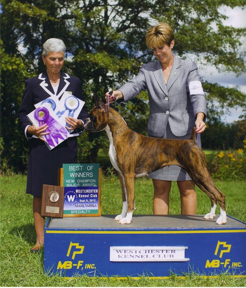 "Charlotte"…is pictured finishing at the NY Boxer Club Specialty 9/9/12 going WB/BOW 4pt major