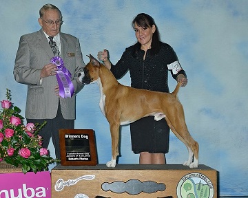 Tino is pictured below finishing his championship with a 5pt. Major, Judge: Mrs. Houston (Toddie) Clark. Tino was Owner handled.